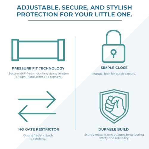 - Spring Closure System for Convenience: Features a convenient spring-loaded closure mechanism that allows for smooth, secure closing every time. Adults can easily operate the gate with one hand, while it remains safely closed for children and pets.