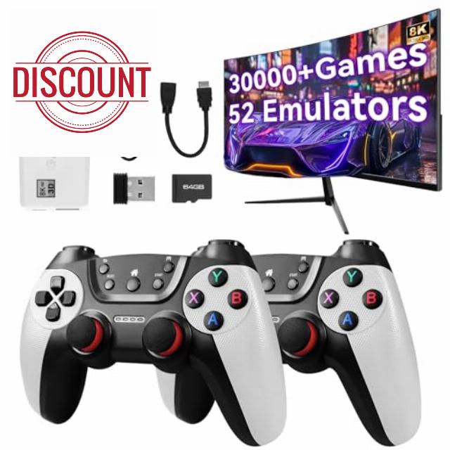 Forlarme M22 Retro Game Console –Support to with 30000+ Classic Games, 8K HD HDMI, Plug and Play Game Console, Upgrade Dual Wireless Controllers Gift for Teen and Partner White