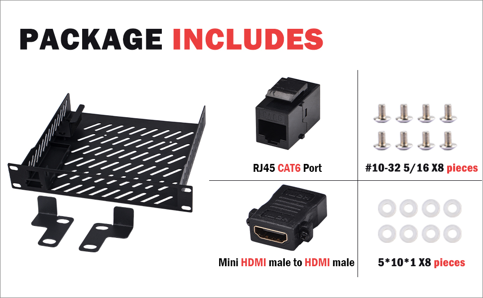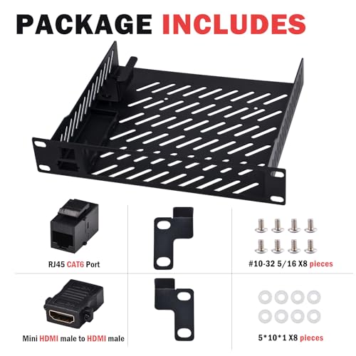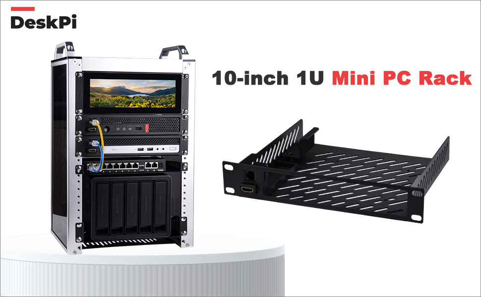 GeeekPi DeskPi RackMate 1U Rack Mount Shelf, 10 inch Mini PC Rack Shelf with RJ45 CAT6 Port & Mini HDMI Port for DeskPi RackMate T1/T