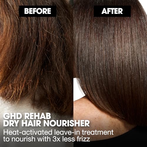 - ghd rehab dry hair nourisher offers a solution for dry, frizz-prone hair by harnessing the power of heat: Treat dry, frizz-prone hair to our rich cream that nourishes hair with 3x less frizz and instantly smoother hair.