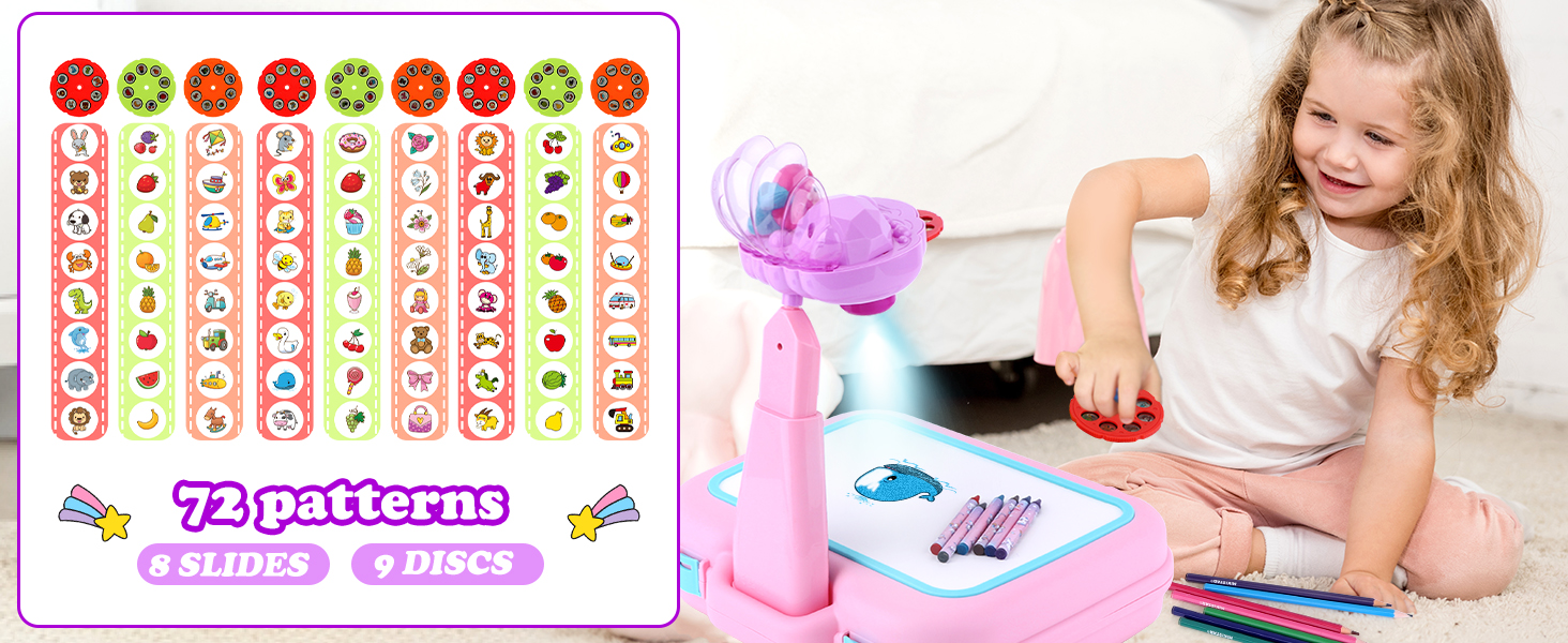 ✨ 72 IMAGES FOR ENDLESS FUN: Keep little artists engaged for hours! Our upgraded drawing projector includes 9 reusable discs with a huge variety of 72 pre-drawn images—no more repeating the same patterns.