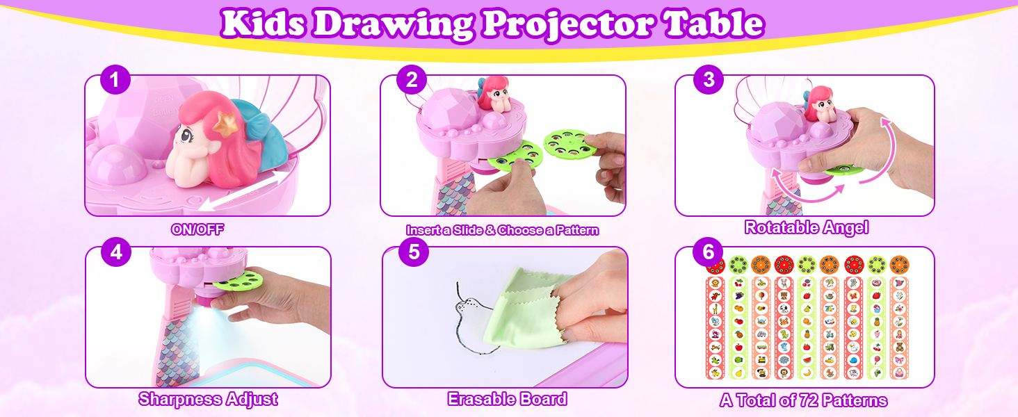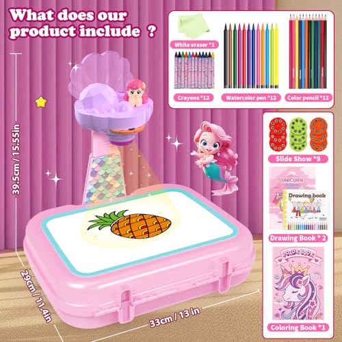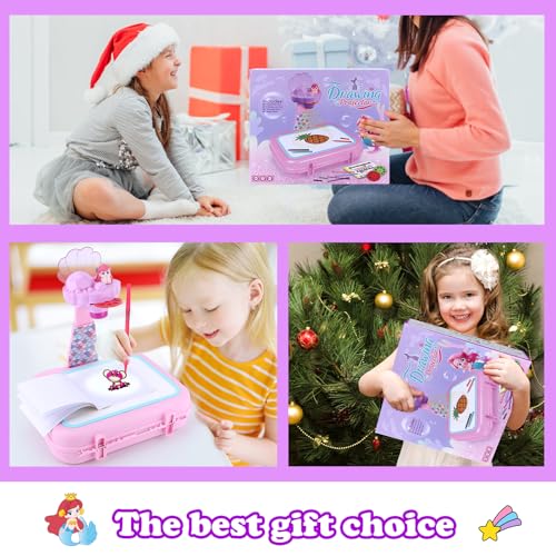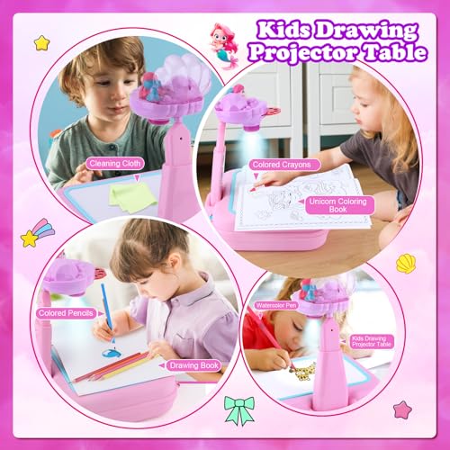 Girls Drawing Projector for Kids Ages 3-5 Arts and Crafts Kit with 72 Projection Images Drawing Board Coloring Book Crayons Creative Gift for Girls(Mermaid Kit with Box)