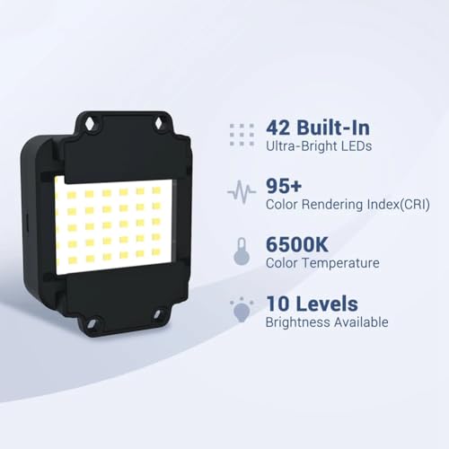 - [Professional LED Light/Diffuser]This product has 42 super bright LEDs built in and comes with a hood that produces soft, even light, avoiding the image hot spots that are easy (and hard to avoid) when using old cheap, non-optical quality diffusers.