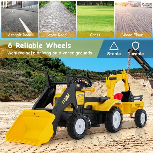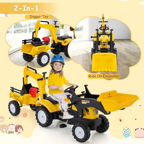 GYMAX Kids Ride On Excavator, 3 in 1 Children Pedal Tractor