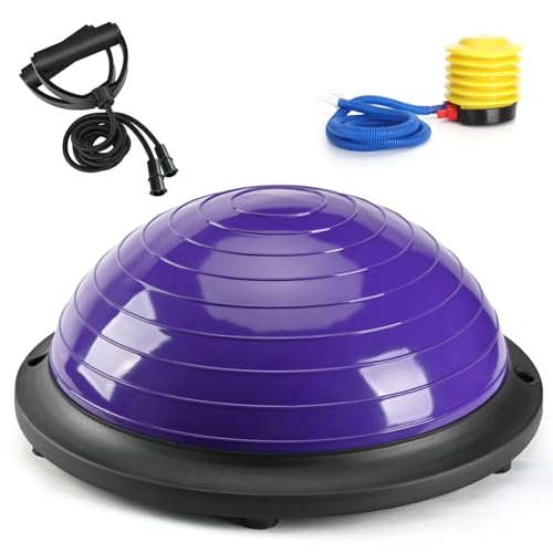 - 【Versatile Balance Ball for Total-Body Training】Our half exercise ball's unique half-sphere design supports endless exercises—from planks and push-ups to squats and stability drills—while the vibrant blue color adds a bold aesthetic to your home gym. Includes 2 elastic resistance bands with blue foam handles for arm and core challenges