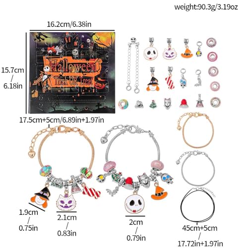 Halloween Charm Bracelet Advent Calendar,20-Day Unique DIY Bracelet Jewelry Countdown Box, Spooky & Fun Halloween Gifts, Hallo/ween Countdown Calenda