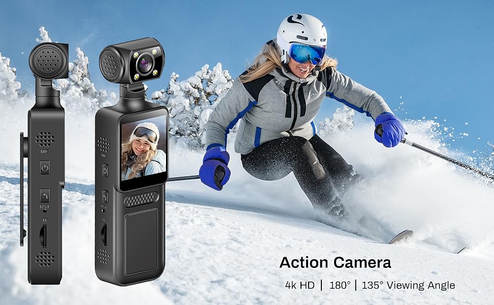 - Ultra Wide 135° Viewing Angle: Record clear, noiseless 4K ultra HD images with a 135° wide angle view. The 1.3 inch HD screen allows easy adjustment of recording angles for enhanced viewing.