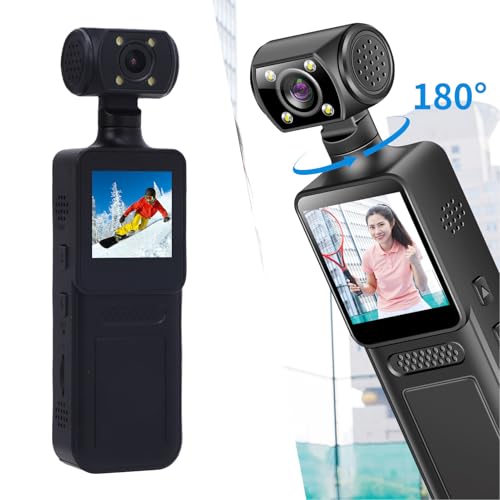 Handheld Action Camera, 180° Rotatable 4K HD WiFi Pockets Camcorder for Sports, Travel Vlog, with Clip, 1.3 Inch HD Screen, APP Control