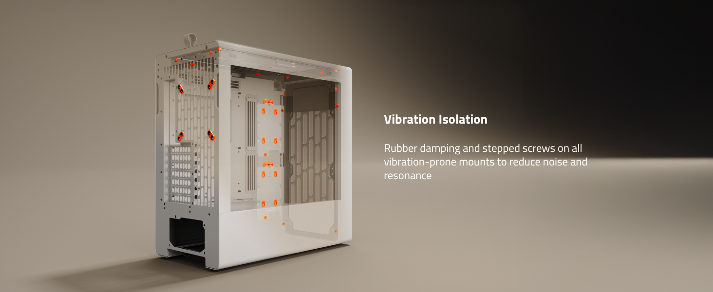 - NOISE-REDUCTION ENGINEERING: Vibration-dampened fan brackets, isolation mounts, and reinforced panels minimize acoustic output. Advanced HFF series fans use harmonized blade edges, Fluid Dynamic Bearings, and optimized hubs for quiet, precise, and durable airflow.