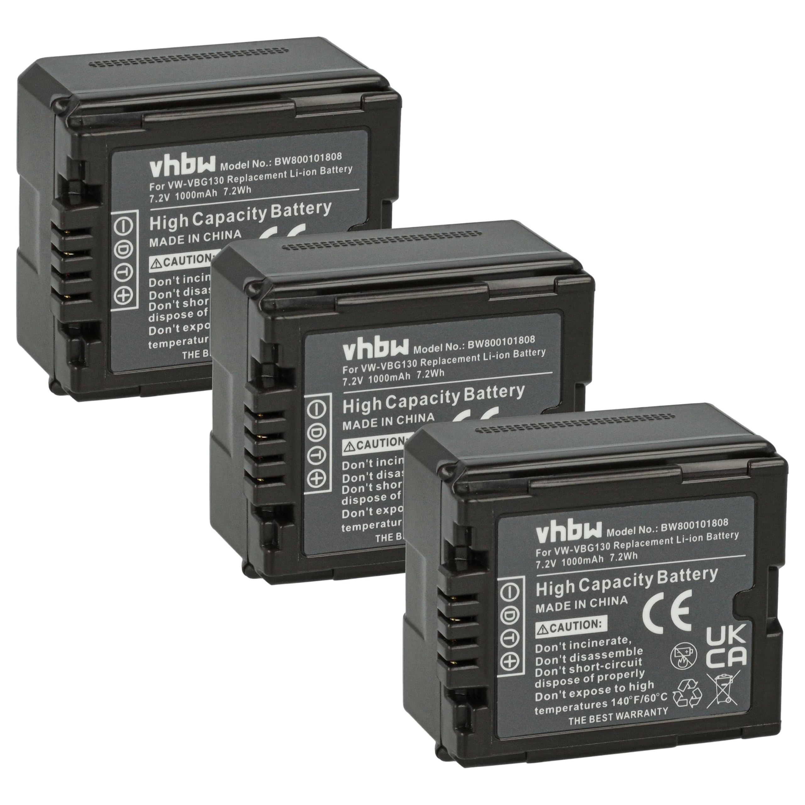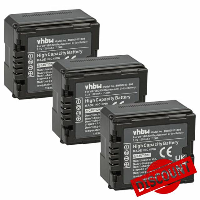 hbw 3x Battery compatible with Panasonic HDC-HS20, HDC-DX1, HDC-HS100 Videocamera (1000 mAh, 7.2 V, Li-Ion) + Info Chip