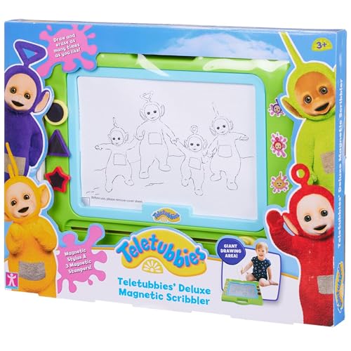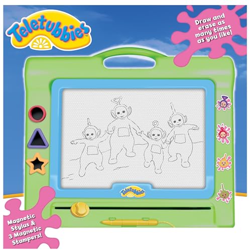 - MESS-FREE MAGNETIC DRAWING FUN: The Teletubbies Magnetic Scribbler offers endless creativity without any mess. Kids can draw, stamp, and erase over and over on this large magnetic drawing board—no paper, no ink, no clean-up!