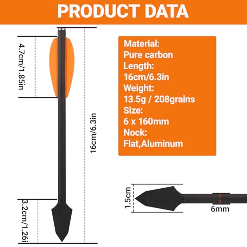 【Mini Crossbow Bolts Data】Total Length:16cm/6.3";Shaft OD: 6.2mm/.24"; Weight: about 13.5g,Designed for 50-110lbs High Impact Pistol Crossbows.Use for small hunting games, target practice, and outdoor shooting training.