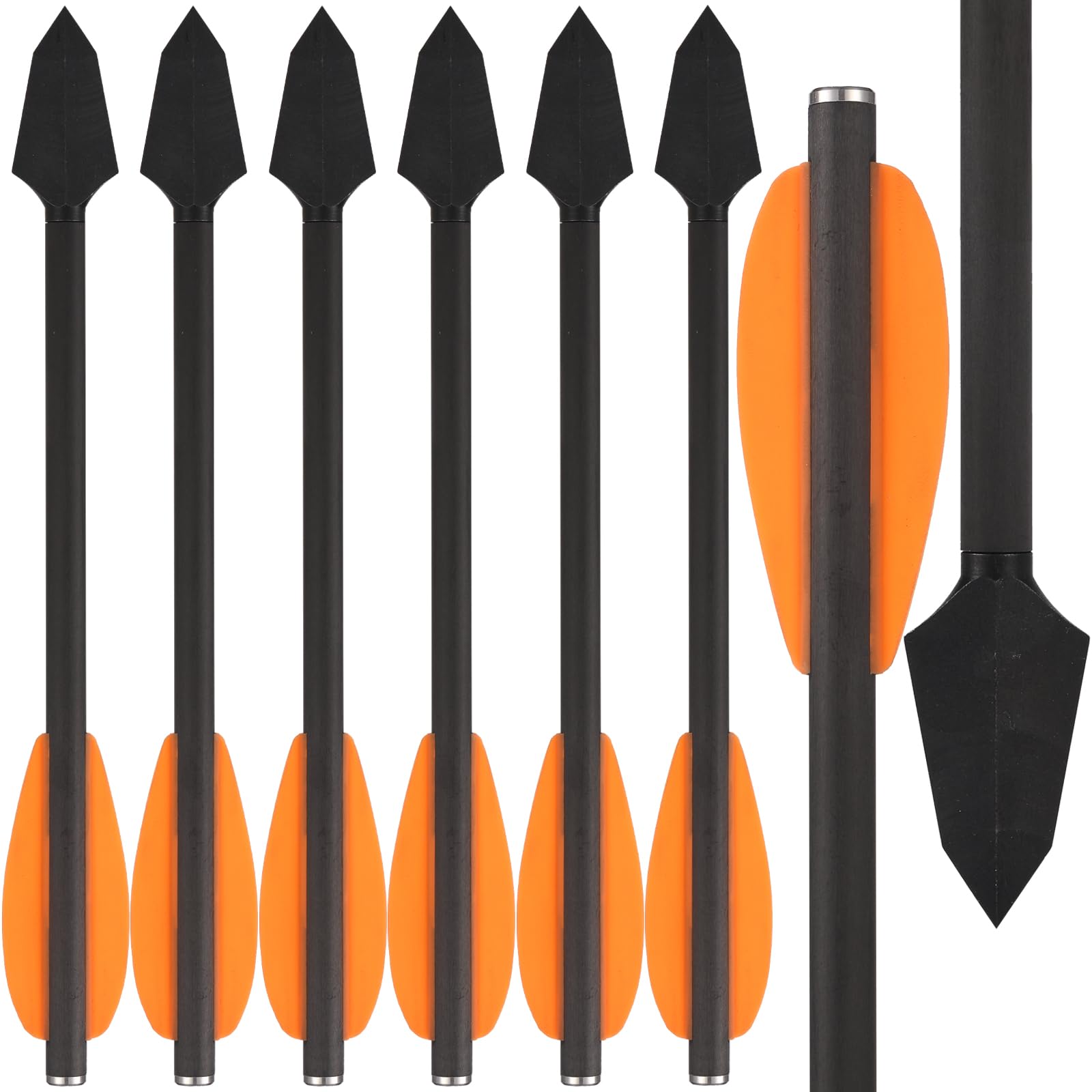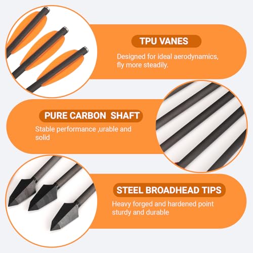 【Design Highlights】The Pistol Crossbow Arrow is Consists of pure carbon shaft and steel broadhead tip; Flat Nock made of aluminum, it very wear resistant; 2pcs tpu vanes; well made, stable performance ,urable and solid,good speed,high accuracy .