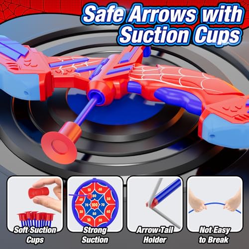 Safe & Easy to Use: The bow and arrow toy set comes with soft suction cup arrows that can firmly adhere to targets, walls, or smooth surfaces without worrying about sharp tips or hard edges. The bow has a non slip grip and no sharp edges, so children can easily grip the lightweight bow, making learning to shoot simple.