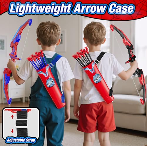 Durable & Convenient to Carry: The bow and arrow toy is made of ABS material and can withstand active gaming. It is lightweight and easy to carry with an adjustable strap, suitable for children of all ages. Whether going to the park or a friend's house, your child can effortlessly carry their archery equipment and no longer lose arrows!