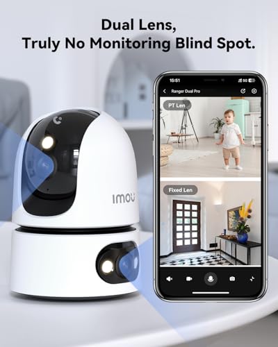 Imou Dual-Lens 2K+2K Indoor Security Camera, House Security Camera 360°Full Coverage, Pet Baby Camera with APP, Color Night Vision, Human/Pet/Sound/Motion Detection, Siren Spotlight, 2.4/5GHz Wifi