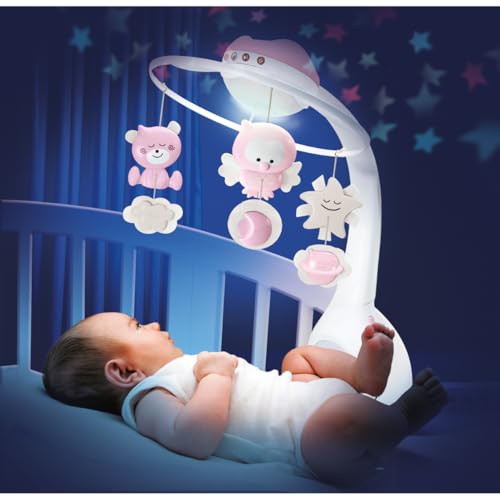 EASY TO USE AND CLEAN: The mobile has a volume control with mute function, a music and sound selection, a multi-colour light projection and a night light, and requires three AAA batteries. It is also easy to wipe clean with a damp cloth