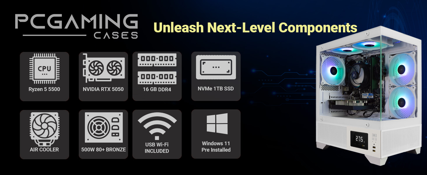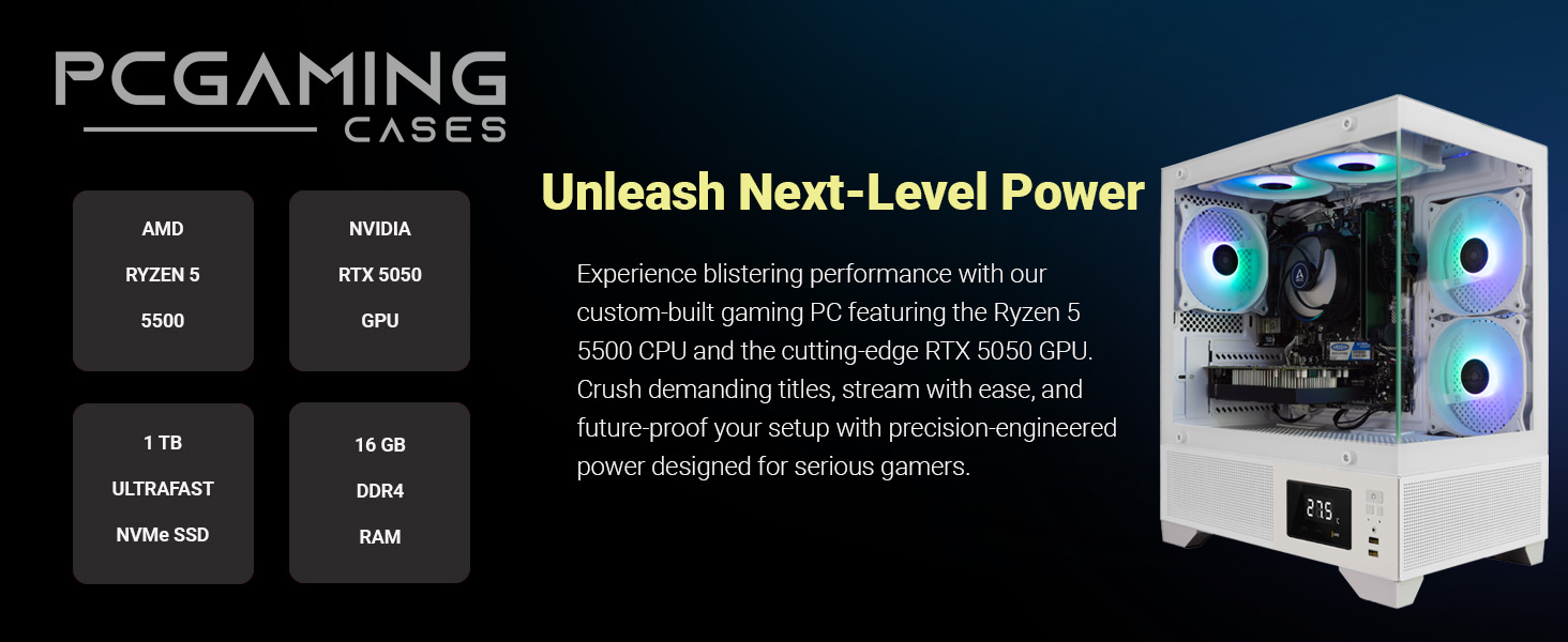 Smooth, Responsive Performance for Everyday Gaming: Powered by the AMD Ryzen 5 5500 and NVIDIA RTX 5050 8GB graphics card, this system delivers fluid frame rates and vivid visuals—perfect for popular titles like Fortnite, Valorant, and Apex Legends. It strikes the ideal balance between performance and affordability, making it an excellent choice for both casual and competitive gamers.