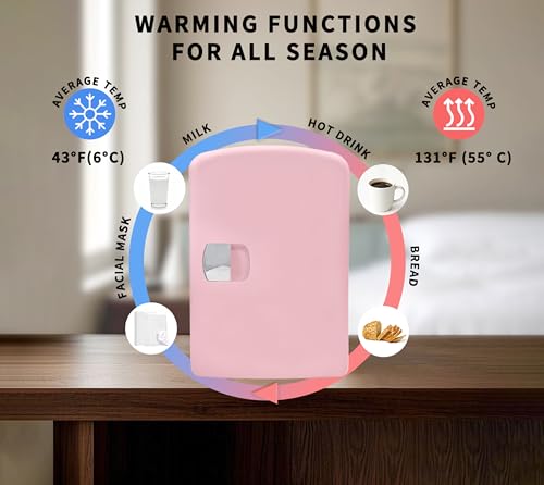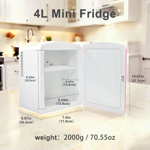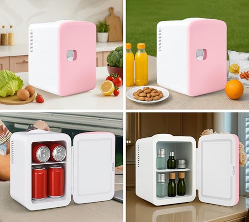 Multi-functional Mini Fridge: This 4-liter compact fridge provides independent storage, keeping your items free from the clutter and odors of a shared household refrigerator. Perfect for your office or bedroom and car, it conveniently stores and chills drinks, snacks, skincare products, and more.