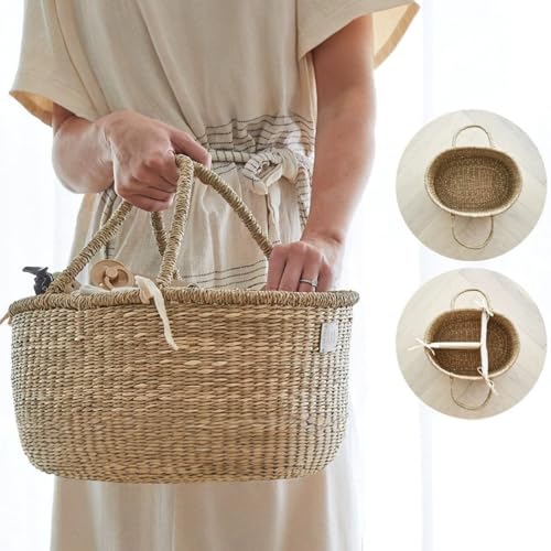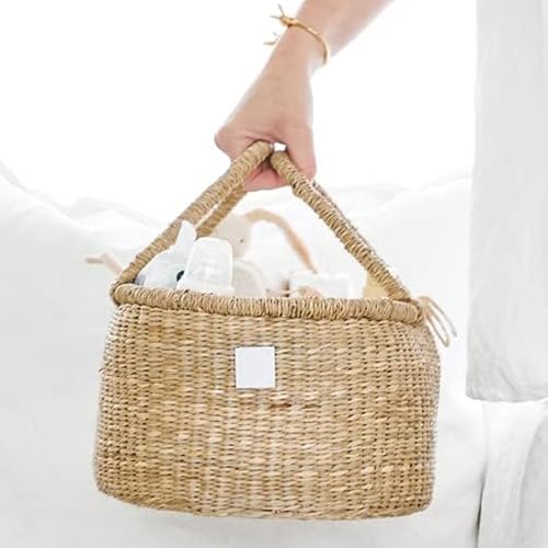 Jeorywoet 16x11x7 Inch Nappy Caddy Baby Caddy Organic Seagrass Diaper Basket with Handles Organizer for Home Nursery Car Travel
