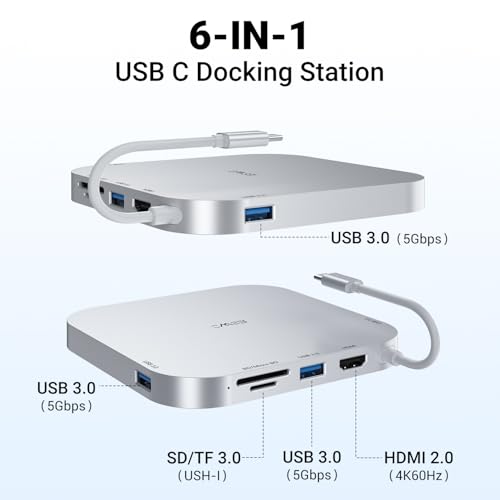 JESWO Mac Mini M4 Dock with 4K@60Hz HDMI, USB C Hub Multiport Adapter with USB C to HDMI, 3 USB 3.0 Ports, TF/SD Card Reader, Docking Station for Mac Mini M4/M4 Pro