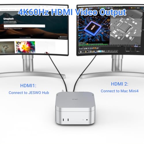 JESWO Mac Mini M4 Dock with 4K@60Hz HDMI, USB C Hub