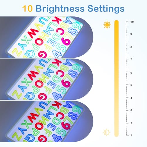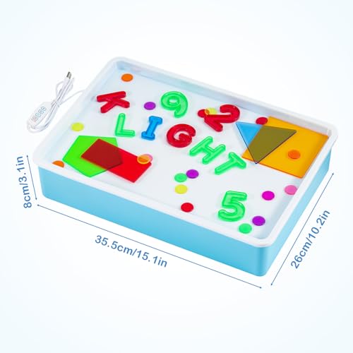 【Adjustable Brightness & Safe Design】The autism sensory table features 10 brightness settings with blue-light-free inspection, measuring 38.526.78cm, lightweight and safe. Parents can adjust the light for comfortable use, helping kids explore colors without eye strain.
