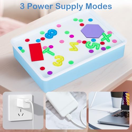 【Suitable for Multiple Scenes】Our sensory light table supports USB power bank, phone charger, or computer use, with a storage bag for portability. Perfect for home learning, preschool, therapy centers, or classrooms, offering flexible options for sensory play and education.