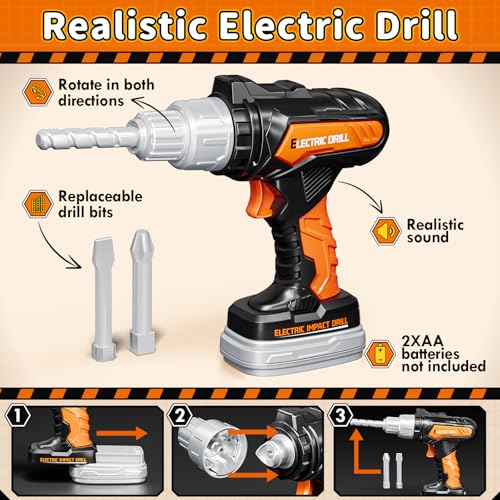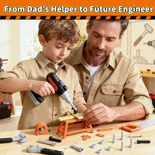 Realistic Construction Fun: These construction toys include a toy drill with sound & rotating function, letting kids simulate real building tasks; while playing, kids strengthen fine motor skills and gain confidence by imitating their dad at work