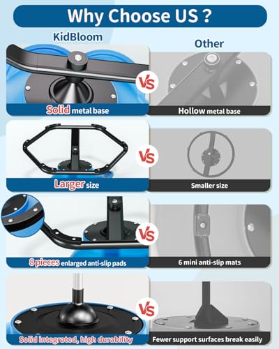 Safe Structure: This sensory spinning chair features a strong metal base and upgraded ball bearings, supporting up to 220 lbs (100 kg) for stable spinning, giving parents peace of mind. Rubber pads on the base prevent slipping and protect floors from scratches