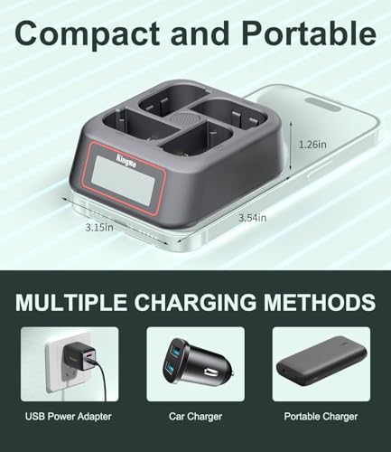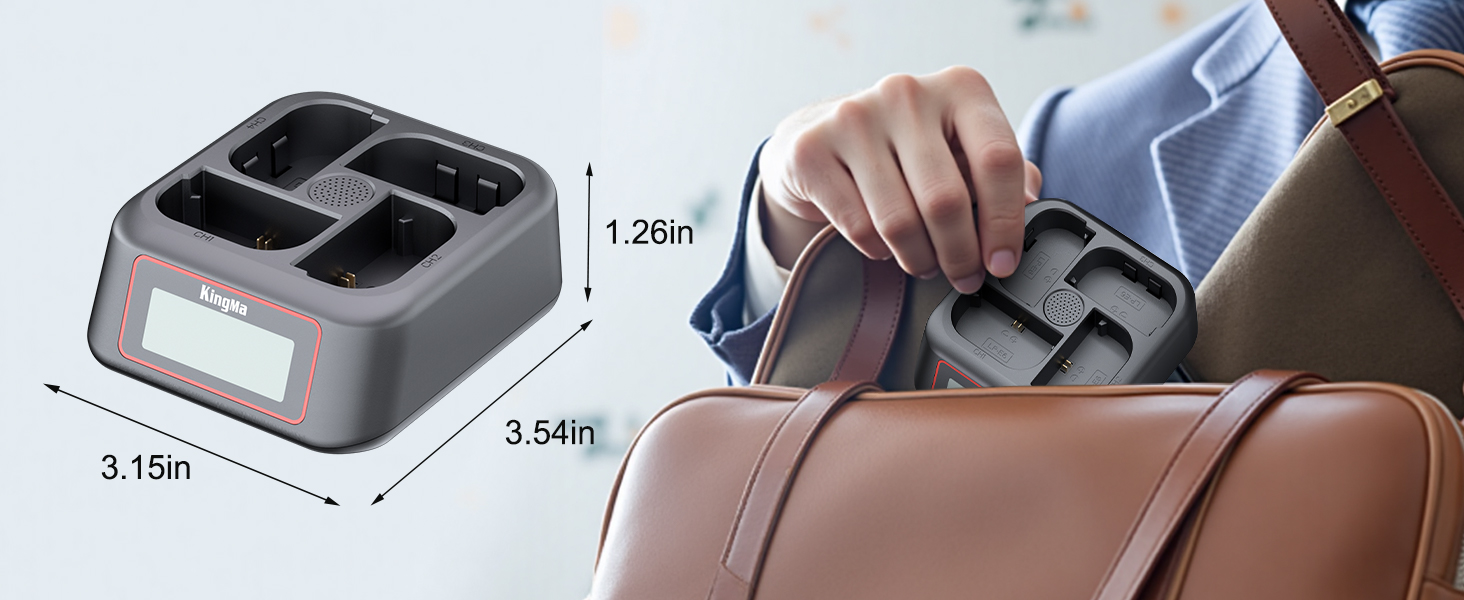 【Compact and Travel-Ready Design】Weighing just 100g and measuring 90x80x32mm, this King Ma camera battery charger fits seamlessly into camera bags, backpacks, or even jacket pockets. Its portable design eliminates bulk, making it ideal for outdoor shoots, travel assignments, or everyday use.