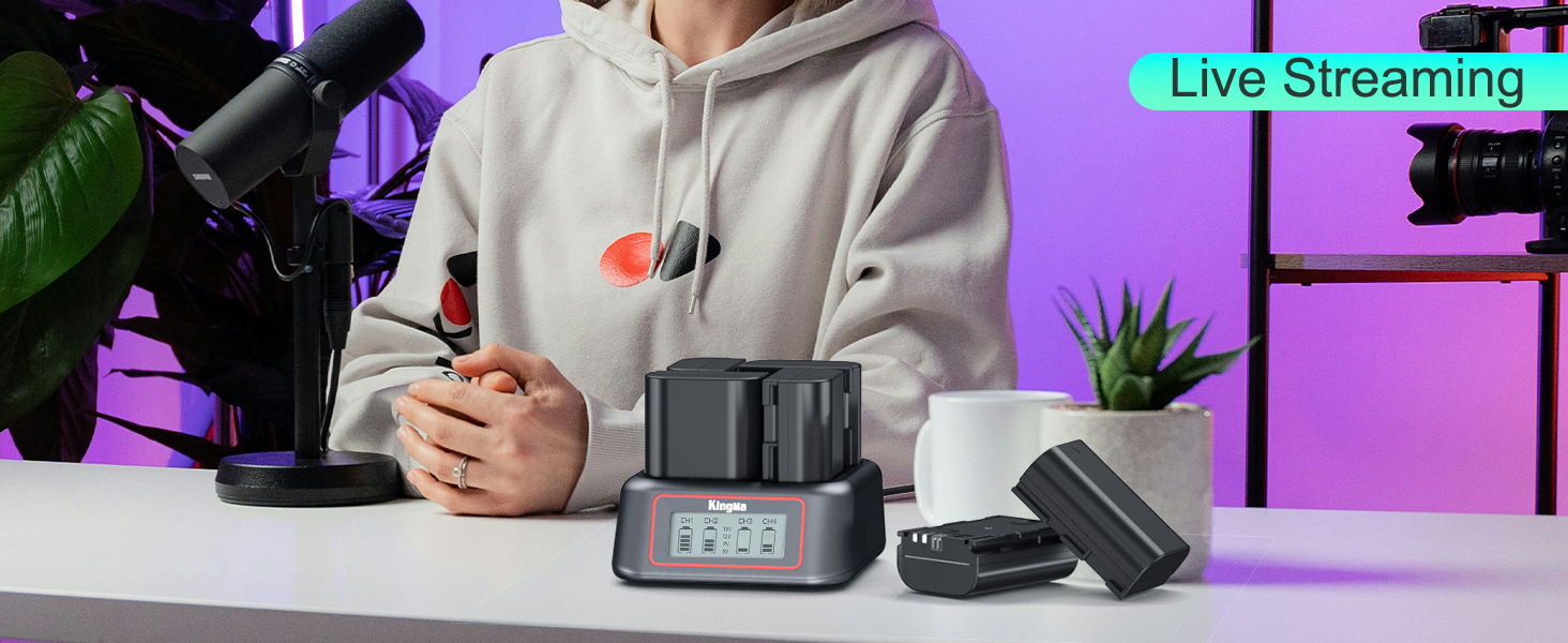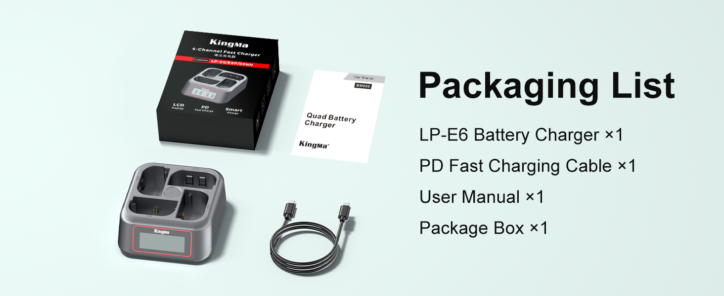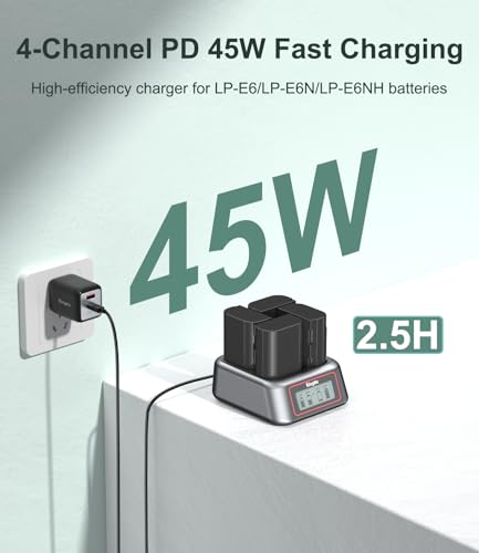 King Ma LP-E6 Battery Charger,4 Channel for LP-E6/LP-E6N/LP-E6NH/LP-E6P,45W PD Fast Charging with LED Display,Compatible with Canon EOS R5/R5 C/R6/R7/5D Mark II/III/IV/6D/6D II/7D/80D/70D/60D