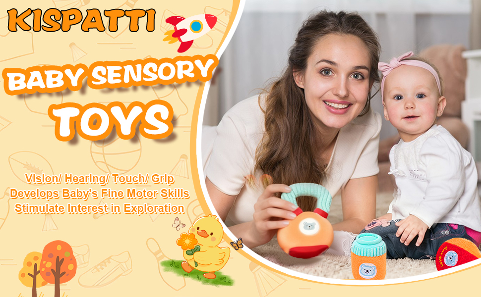 Sensory Toys for Baby: These fitness-themed sensory toys are compact and lightweight, easy to grasp and shake. They come in a variety of sizes, shapes, and textures, complemented by bright colors that effectively capture babies' attention. They stimulate touch, hearing, and vision, encouraging exploration and interaction with multiple senses