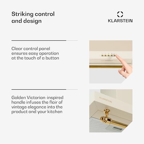 - EXTRACTOR HOOD WITH KITCHEN STORAGE: The Klarstein kitchen cooker hood comes completely equipped with an exhaust hose and a smart railing on the underside of the extractor hood providing you with storage for all your kitchen utensils.