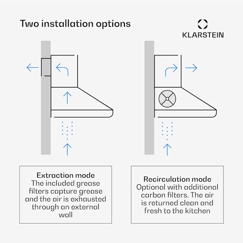 - ENVIRONMENTALLY FRIENDLY WALL MOUNTED EXTRACTOR FAN: This cooker hood is designed with you and the environment in mind. All Klarstein extractor hood fans come with energy efficiency class A while maintaining a high level of hygiene and performance.