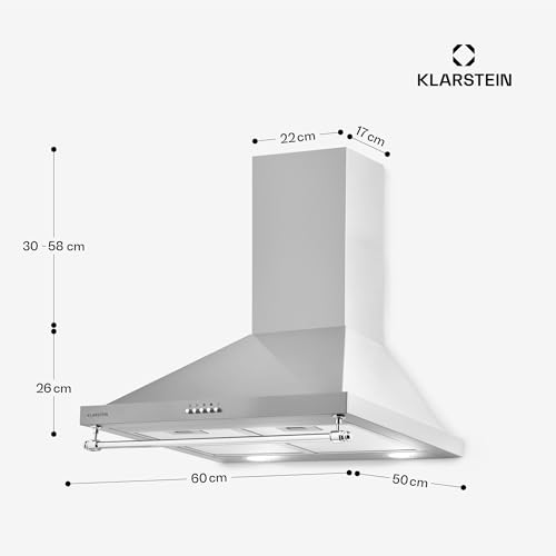 Klarstein Montblanc Cooker Hood – Kitchen Extractor Fan, Cooker Extractor Fan, 610m³ / h, 3 Stages, 165W, 2 x 1.5W LED Bulbs, Mounting Set with Wall Brackets, Silver/Grey [Energy Class A]