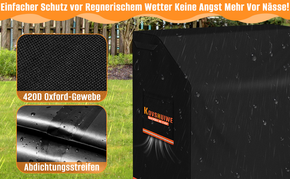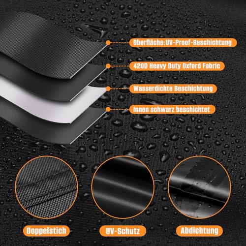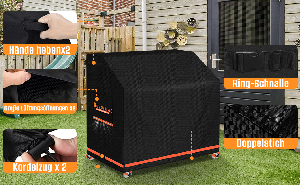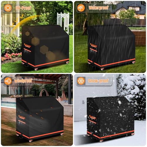 Foot lock design, robust wind protection: Specially designed for outdoor kitchen cover, 4 strong orange band foot fasteners, strong fixing of the four corners of the housing, effective resistance to strong wind interference to ensure that the cover is stable and immovable to protect your beloved outdoor kitchen appliances.