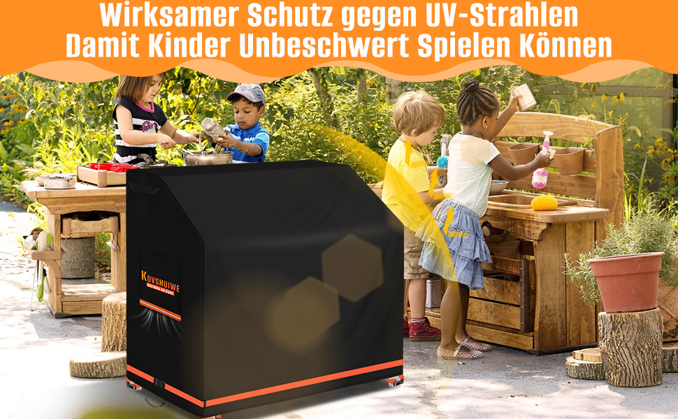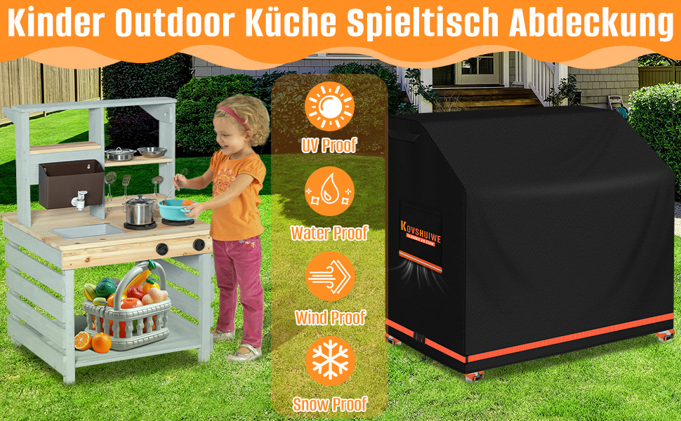 Children's outdoor kitchen cover: This children's play kitchen cover is 110 x 50 x 95 cm in size and made of 420D Oxford fabric. They are waterproof, dustproof, UV-resistant and not easy to mould. Please choose the appropriate size before ordering.