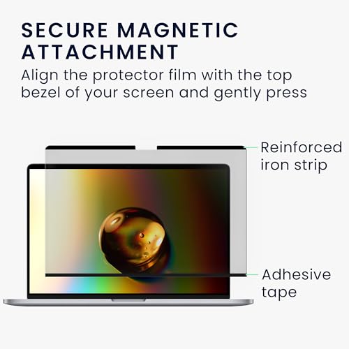 - Magnetic Installation: The laptop privacy screen can be magnetically attached to your laptop thanks to the reinforced iron strip. Install it in seconds by aligning with your laptop’s top bezel