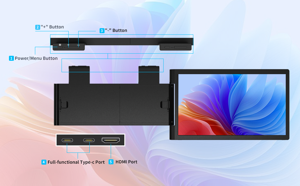 【Plug & Play with No Drivers Required】Simply connect the travel laptop monitor via Type-C or HDMI directly without any additional driver downloads. The portable laptop monitor comes with all the necessary cables (1 x Type-C cable, 1 x USB-A to USB-C cable, 1 x HDMI cable).