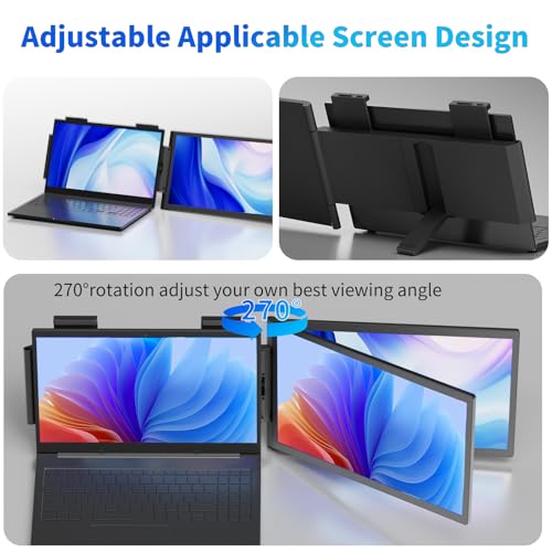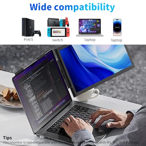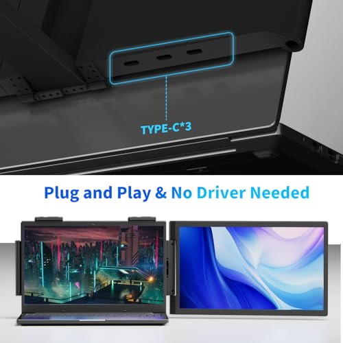 Laptop Triple Screen Extender Monitor Portable 14 inch FHD 1080P IPS Laptop Screen Extender, 3 USB-C Full-featured Plugs for Windows Mac Android Chrome, Switch & PS5, Work with 14”-16” Laptops