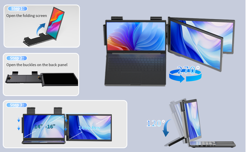 【Wide Compatibility】The 14-inch portable dual monitor for laptops is compatible with most Windows, Mac, Linux, and Chrome operating systems, and also supports most desktops, laptops, micro PCs, and game consoles on the market with its HDMI port.