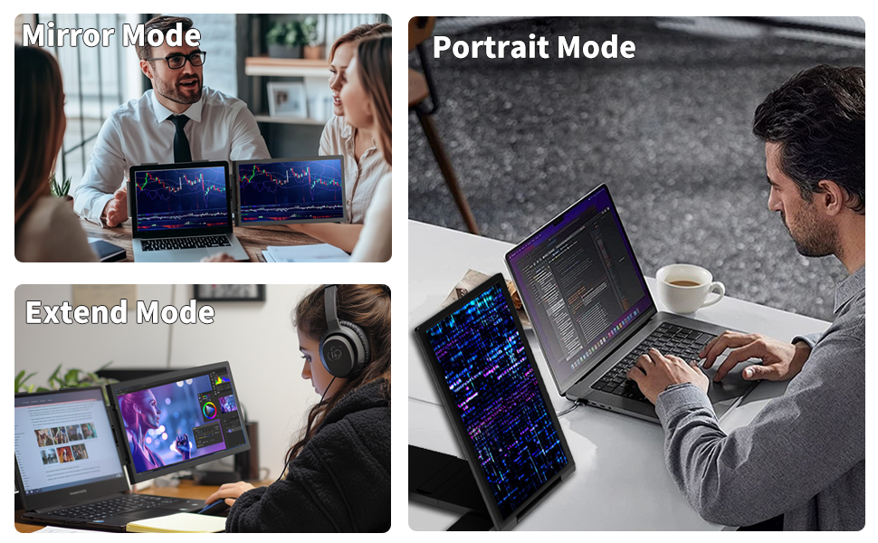 【VERSATILE MODES FOR EVERY TASK】This portable laptop monitor supports three distinct modes: Extended Mode to expand your workspace, Duplicate Mode for screen mirroring during presentations, and Second Screen Mode for added utility.