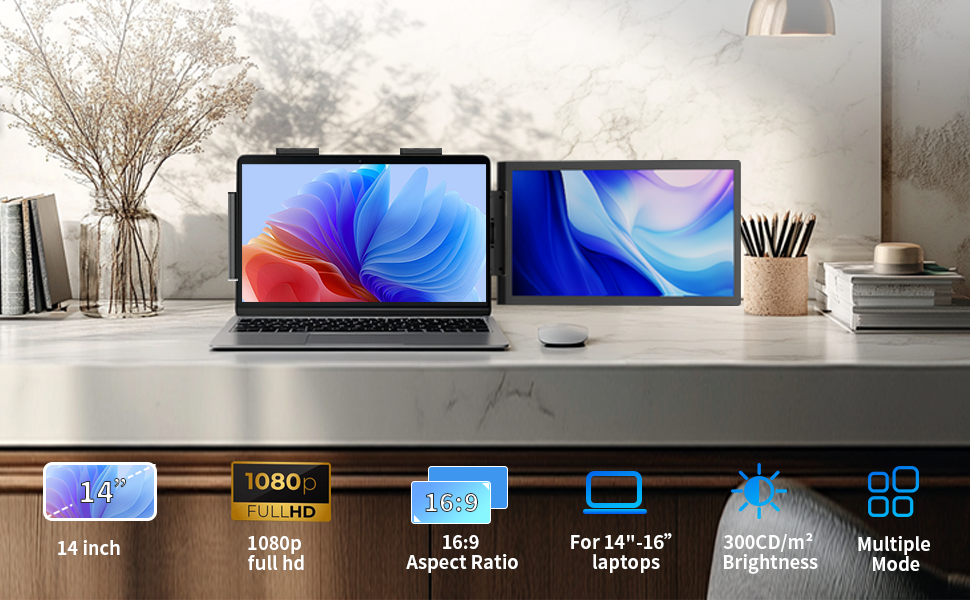 【MAXIMIZE YOUR OUTPUT】Unlock the potential of your workflow with our cutting-edge 14-inch HD laptop screen extender. Designed to transform your laptop into a multi-screen powerhouse.