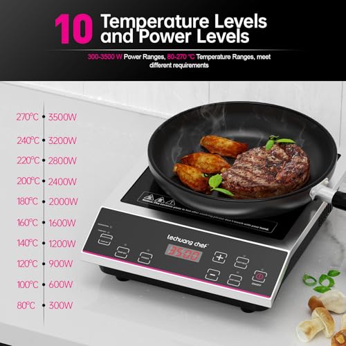 - 【Efficient and Convenient】You can quickly choose your desired power from 300 W to 3500 W, meeting your diverse cooking needs.Meanwhile, Lechuang Chef cooktop has 3500W of power, a fast heating speed, which shortens cooking time. Allows busy people to eat dinner as soon as possible after a long day's work.Make amazing dishes every day!