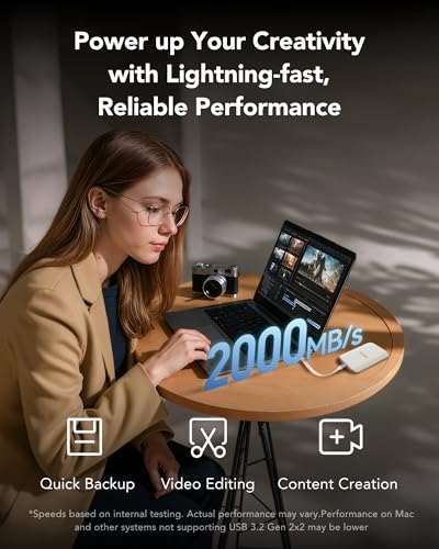 High Performance: Up to 2000MB/s read and 2000MB/s write1 to transfer files fast for a smooth workflow (Performance on Mac and other systems not supporting USB 3.2 Gen 2×2 may be lower)