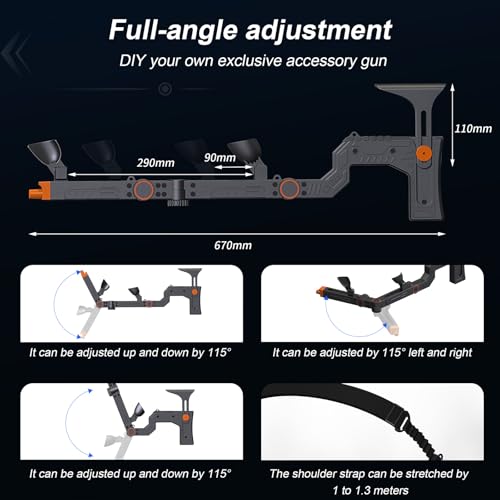 - 【Full Angle and Multi-position Adjustable】 There are three adjustment points on the barrel, two can be adjusted up and down 115 degrees, one can be adjusted left and right 115 degrees, and the two handle holders can also be adjusted back and forth to adjust the position of the handle, the chin rest can up and down expansion, the shoulder strap is length adjustable and stretchable design on the two ends, ensure smooth experience at any angle.