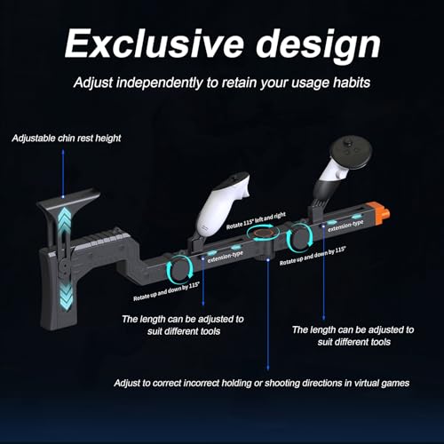 - 【Compatible with Various VR Games and Fit for Different Size of People】 The flexible multi-angle adjustment makes it suitable for a variety of VR games and allows people of different sizes to find a comfortable grip angle and the right direction to shoot.
