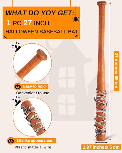 Features: The antique wood-grain baseball bat with barb wire decoration is suitable for Halloween, zombie parties, horror cosplay and other scenes, instantly enhancing the horror atmosphere. Not only is it a Halloween costume artifact, it can also be applied for film and television shooting, stage props, theme photography, and even as a retro home decoration.