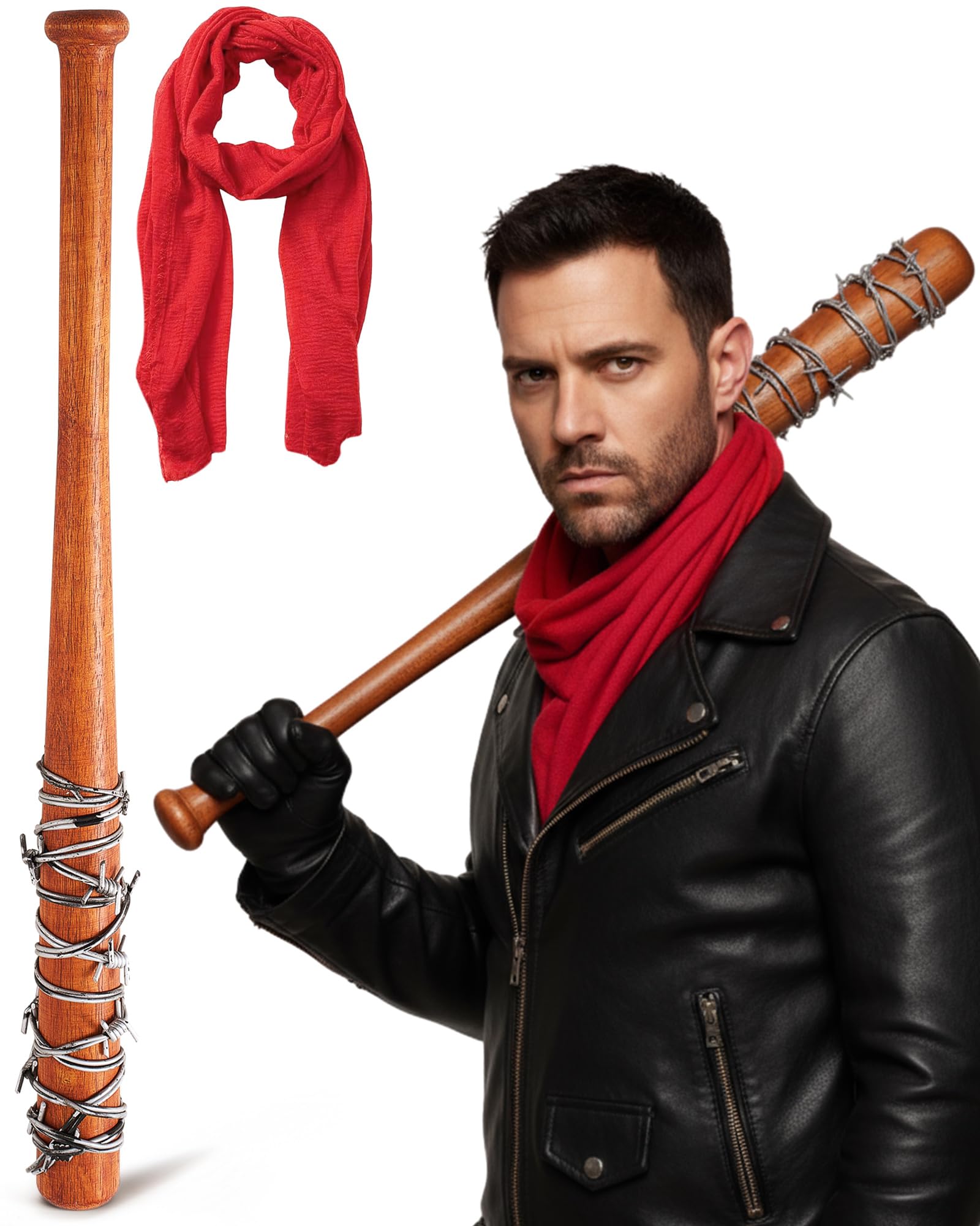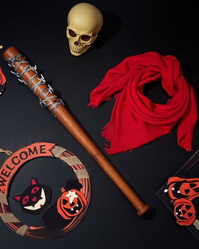 Halloween Set: you will receive 1 Halloween Wood Baseball Bat with fake Barb Wire, 1 red scarf, meet your Halloween party or cosplay needs, embrace festive Halloween activities